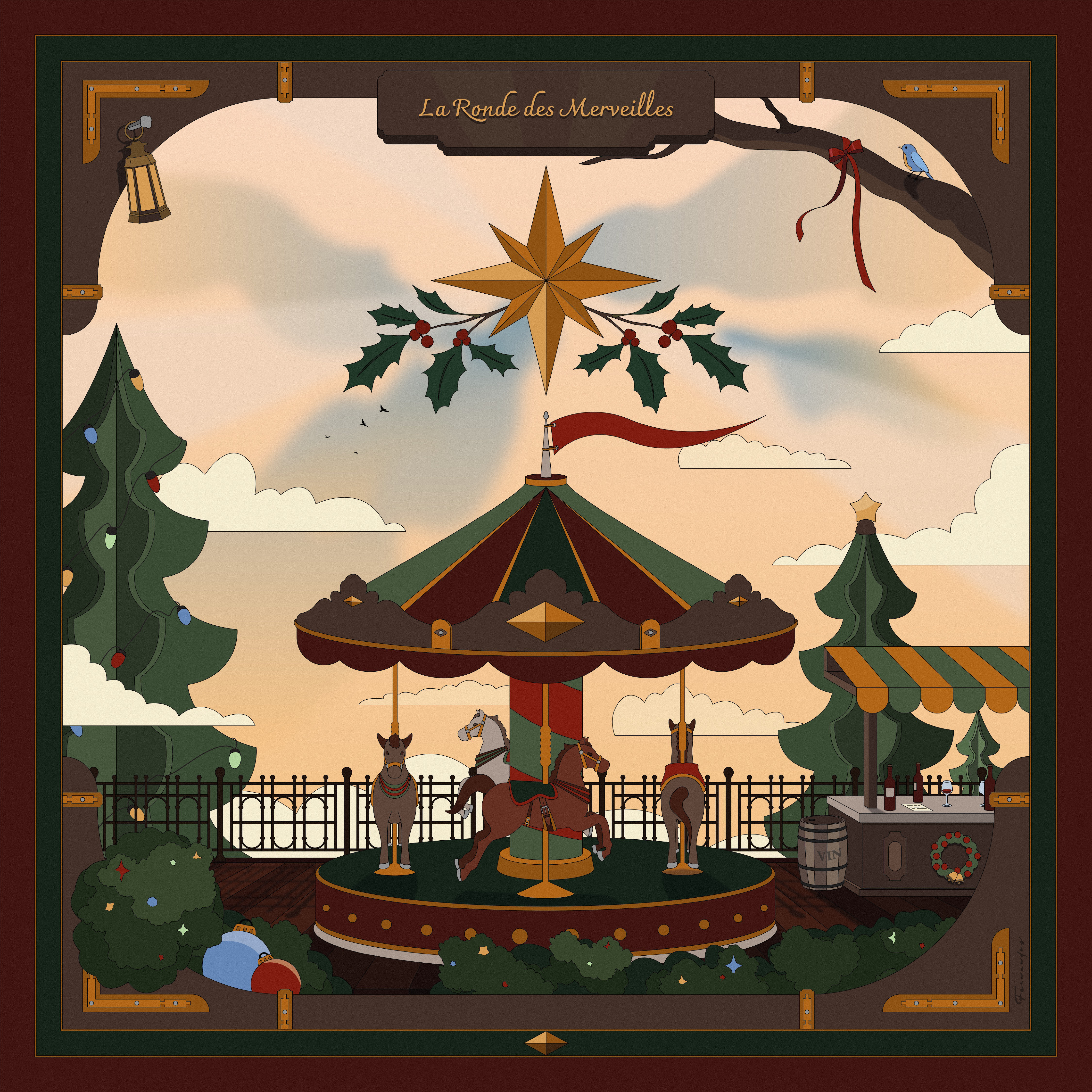 Un carrousel dans une atmosphère de Noël.