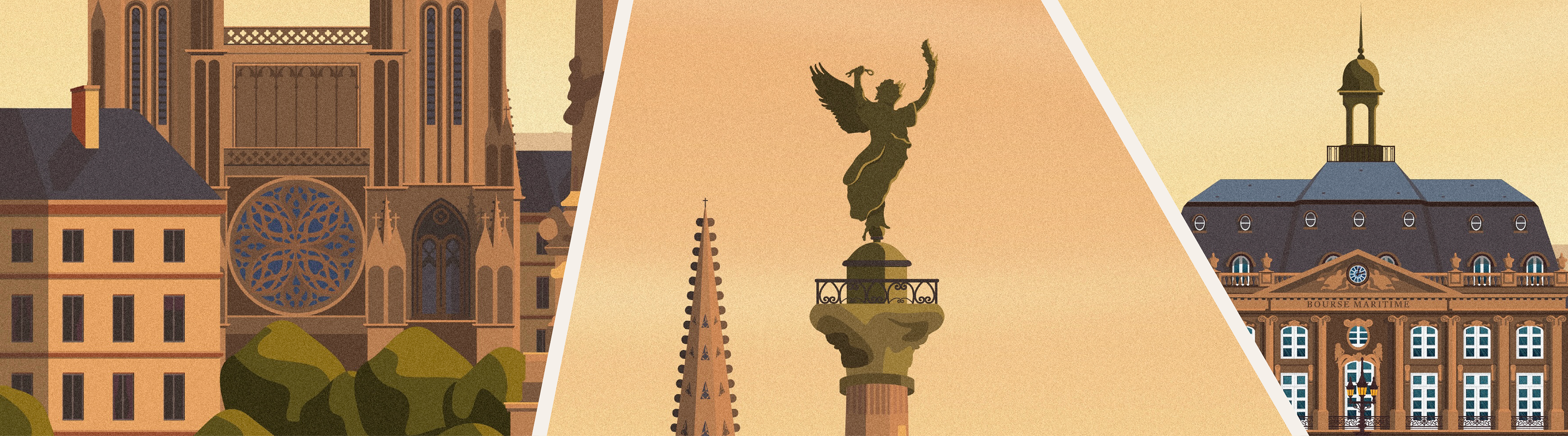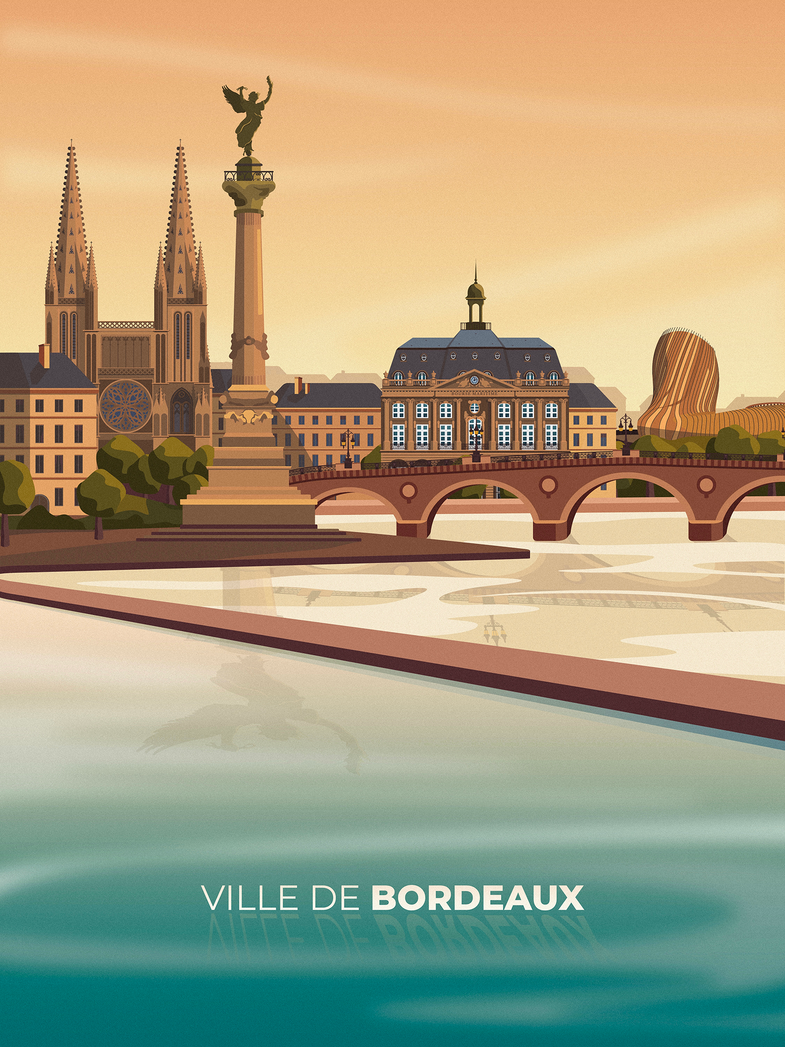 Ville de Bordeaux est une vision illustrée de la ville, baignée dans des tons chaleureux qui célèbrent l’arrivée du printemps.